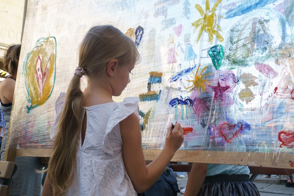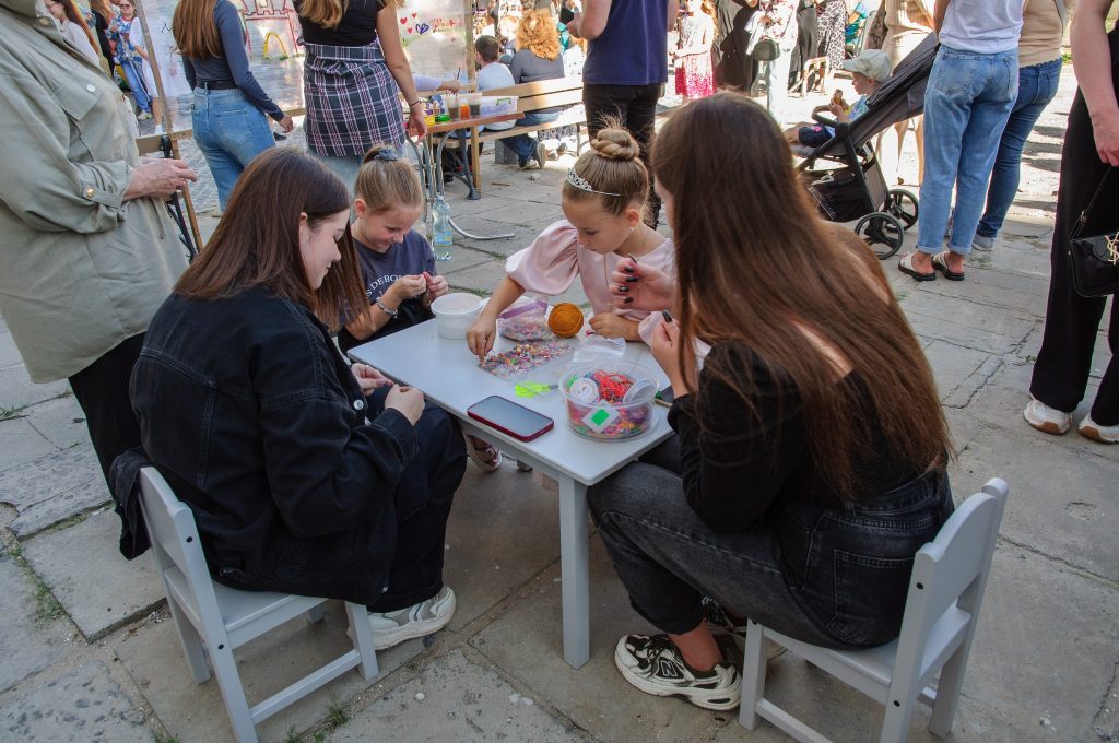 Впродовж свята відбою не було і від столів з майстрами ліпки та малювання🏰. Дітки з радістю виготовляли різні фігурки з пластиліну, малювали коней, замки та принцес! Навіть на спеціально облаштованій локації гості свята могли залишити свій слід на стенді з харчовою плівкою. До речі, ця картина ще й досі прикрашає нашу площу…🌟