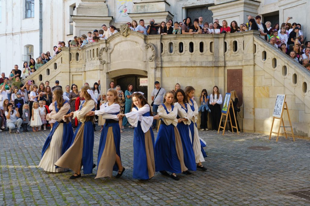 «Notes de Vita»🎭 розважали маленьких і дорослих глядачів концертом з тематичними піснями та баладами, навчали бажаючих старовинним танцям та дивували тогочасними фактами у вікторині! І все це під звуки ліри, флейти, цимбал, лютні!🎼 Все відповідало тематиці дитячого свята, а особливо – ведучі, котрі ще самі будучи дітьми, змогли порадувати усіх присутніх веселими жартами та провести півторагодинний концерт! А трохи згодом старша група театральної студії підготувала аж два захоплюючі квести, де кожна дитина отримала подарунок за свою спритність та цікавість до нашої історії.⚜️