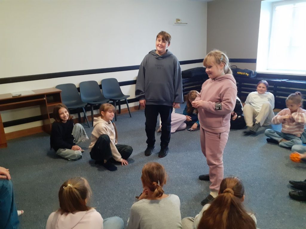 Це вправи на увагу, концентрацію, вміння взаємодіяти та працювати в команді, на розвиток пам’яті, реакцію тощо. А тепер подумайте, чи потрібні такі заняття акторам? ![]()
